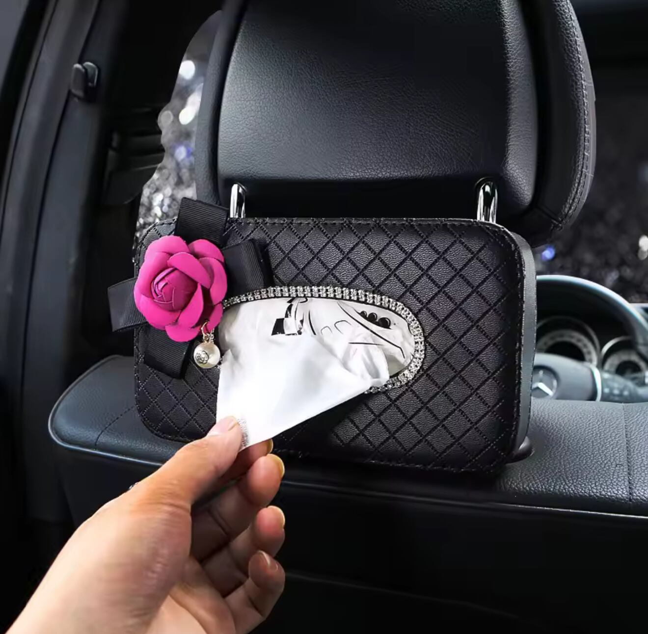 この収納ボックスは、シンプルなデザインながらも高い機能性を持ち合わせています。大切な小物やアクセサリーをすっきりと収納できるだけでなく、取り出しやすさも考慮されています。また、輝くラインストーンがさりげなく上品さを添え、車内をスタイリッシュに彩ります。