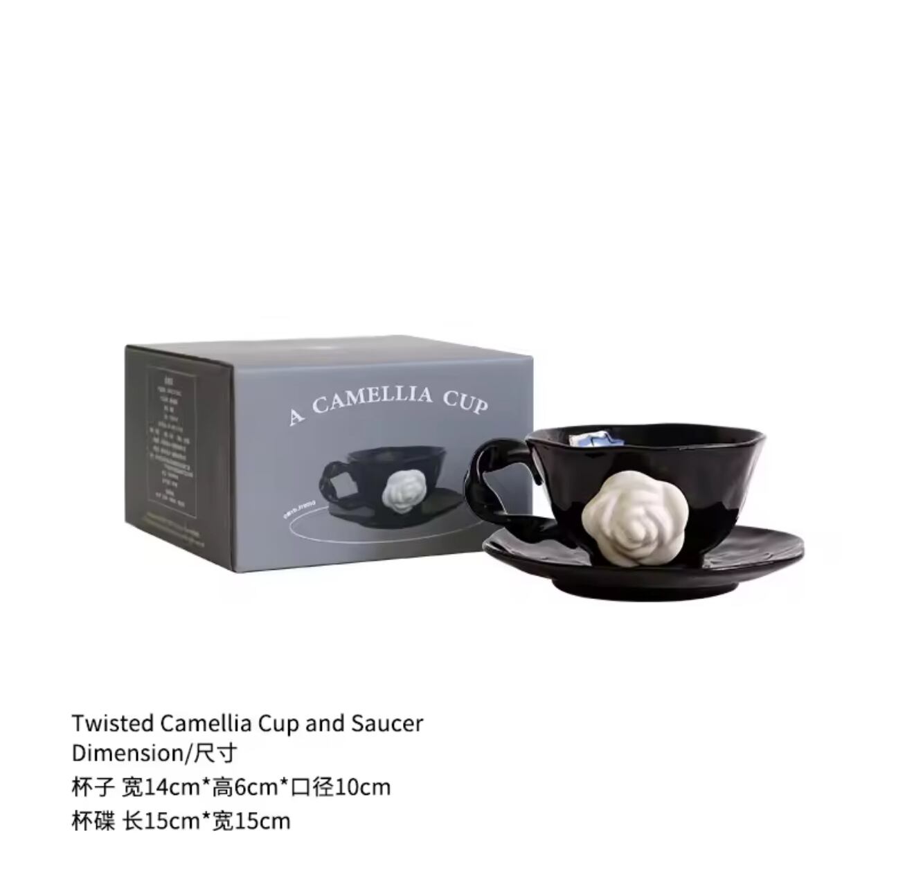 ■フレンチスタイル椿コーヒーカップソーサー 手作り不規則な花黒セラミックマグ