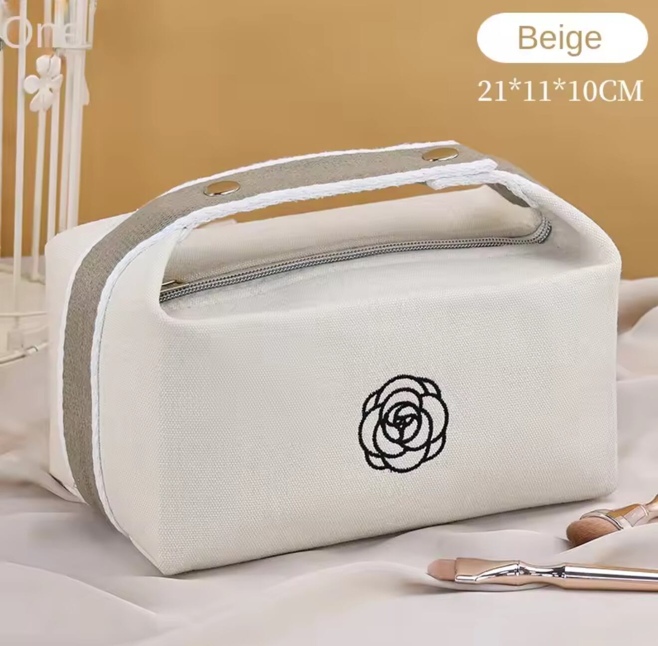 ■椿のキャンバスメイクアップバッグ 旅行用のプレミアムハンドヘルドポータブルバッグ 大容量のトイレタリー収納でスタイリッシュなお出かけを!