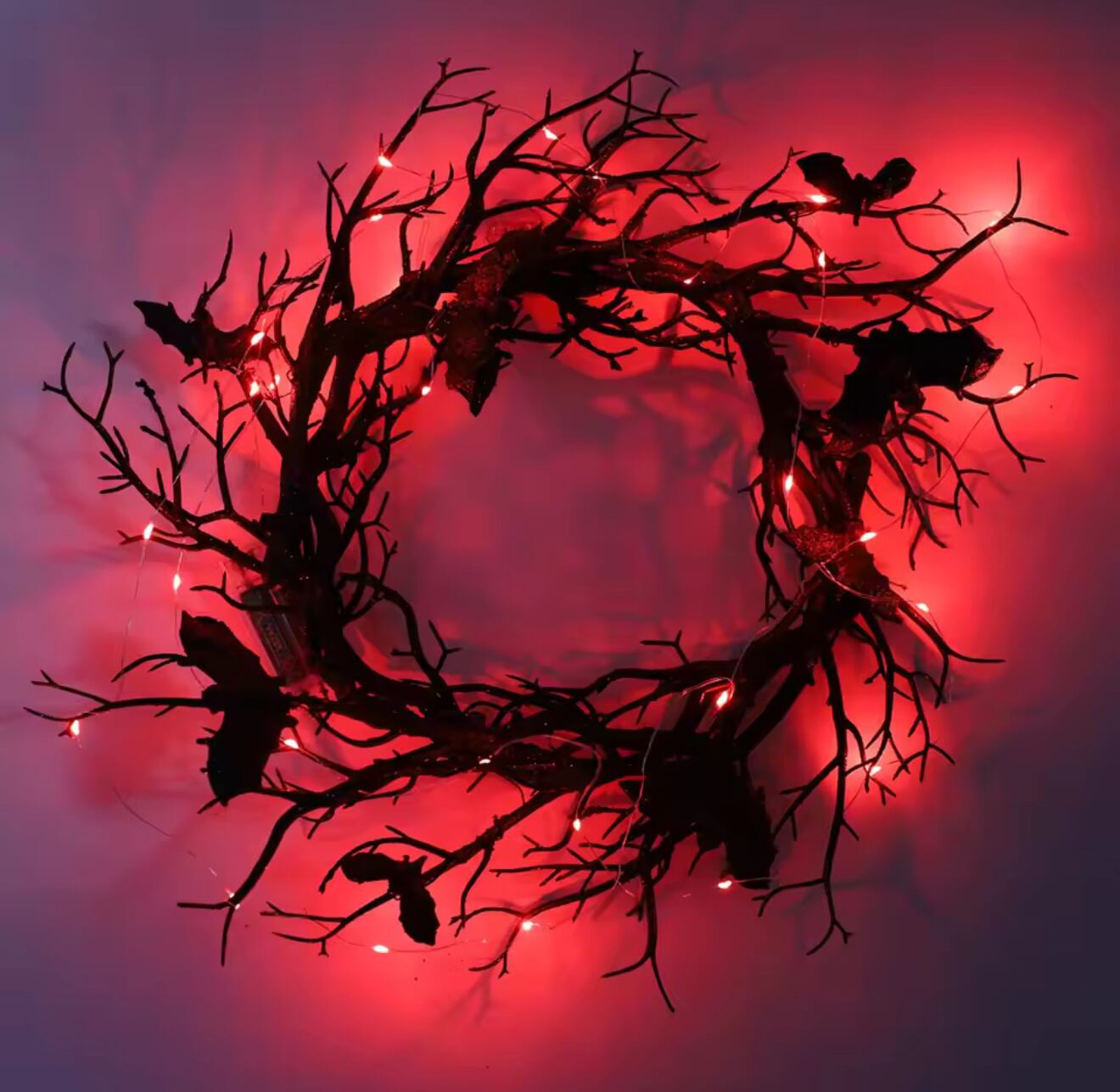 ハロウィンリース玄関ドア用コウモリLED ライト付き