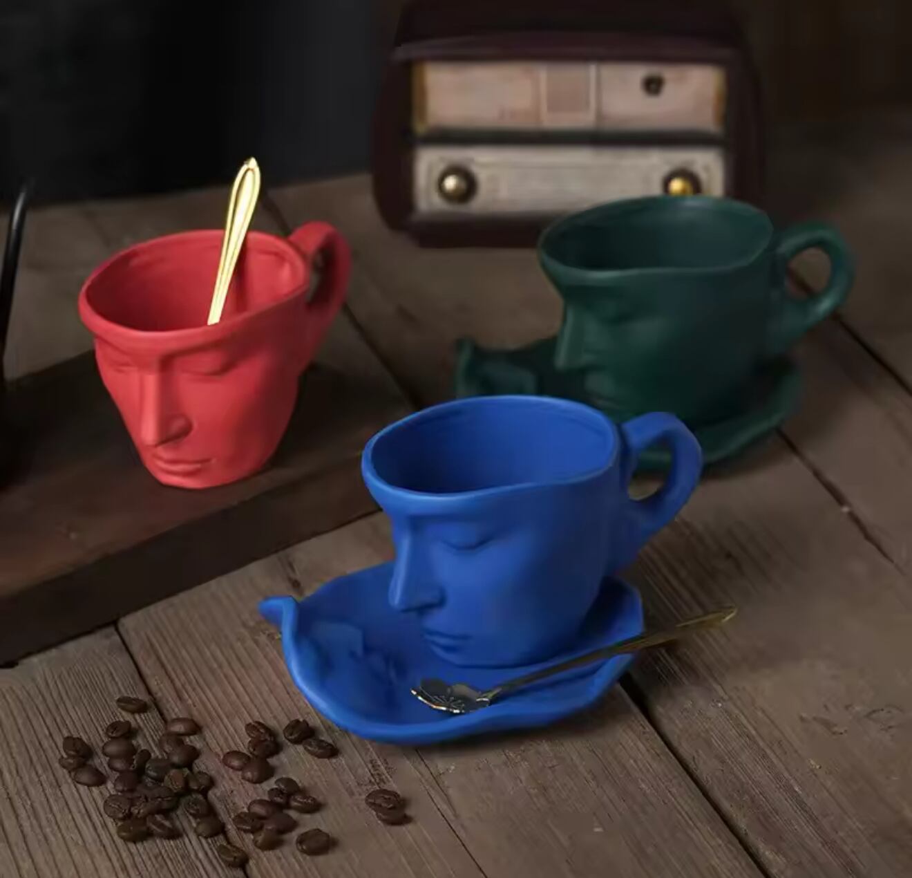 ■創造的な人間の顔の形をしたセラミックマグ - 面白いデザインで日常を楽しく彩る!