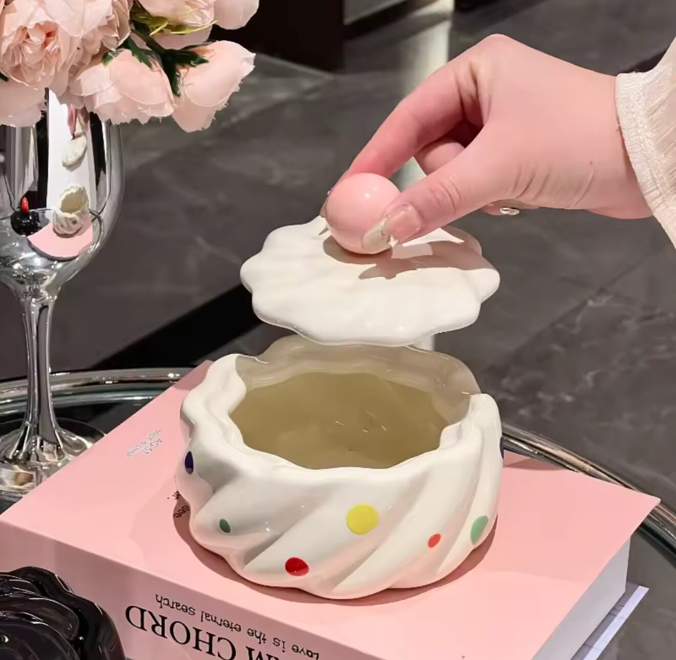 ■セラミック水玉の入れ物 - 塩胡椒からコットン、灰皿にもなる優れもの!