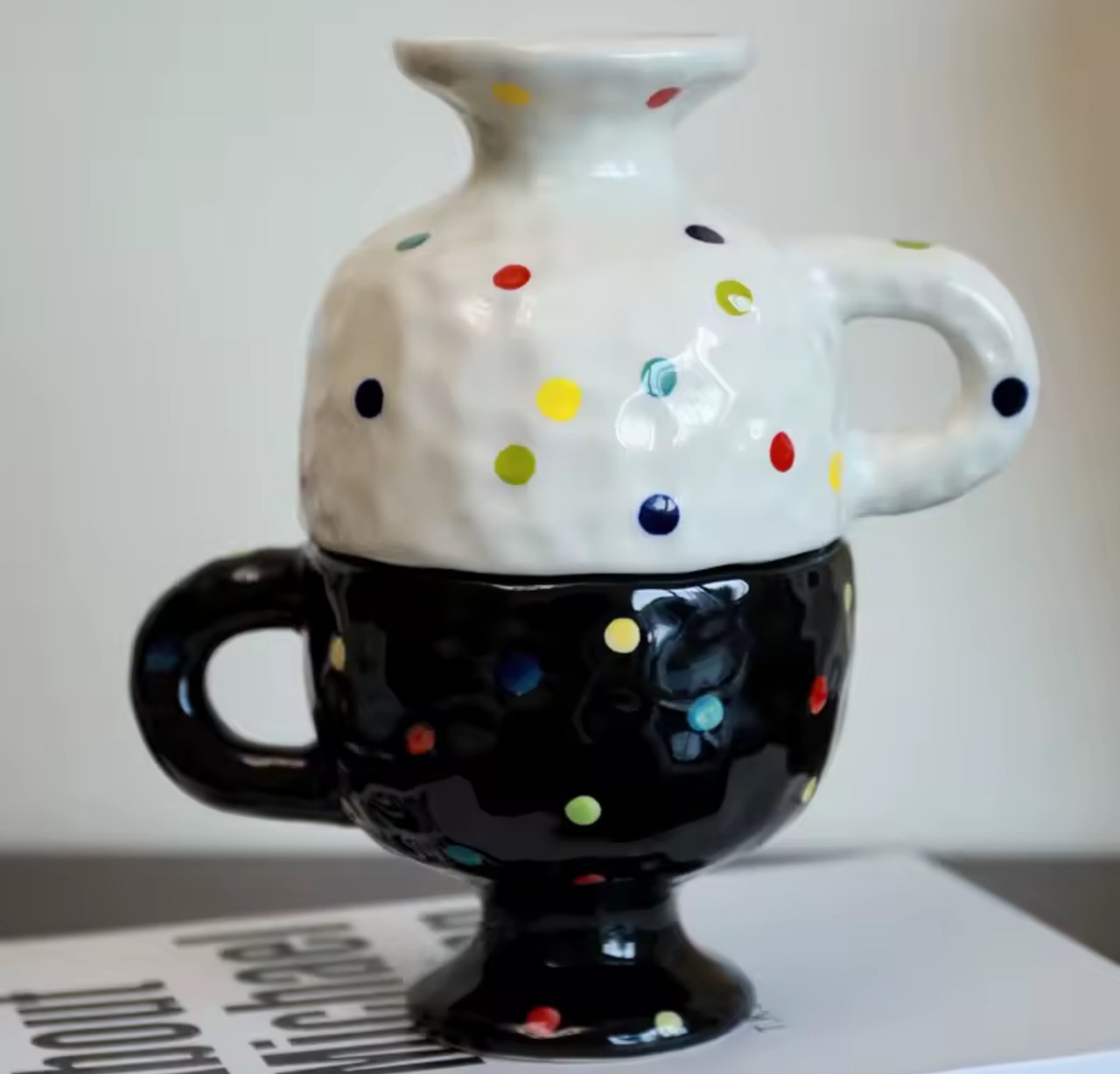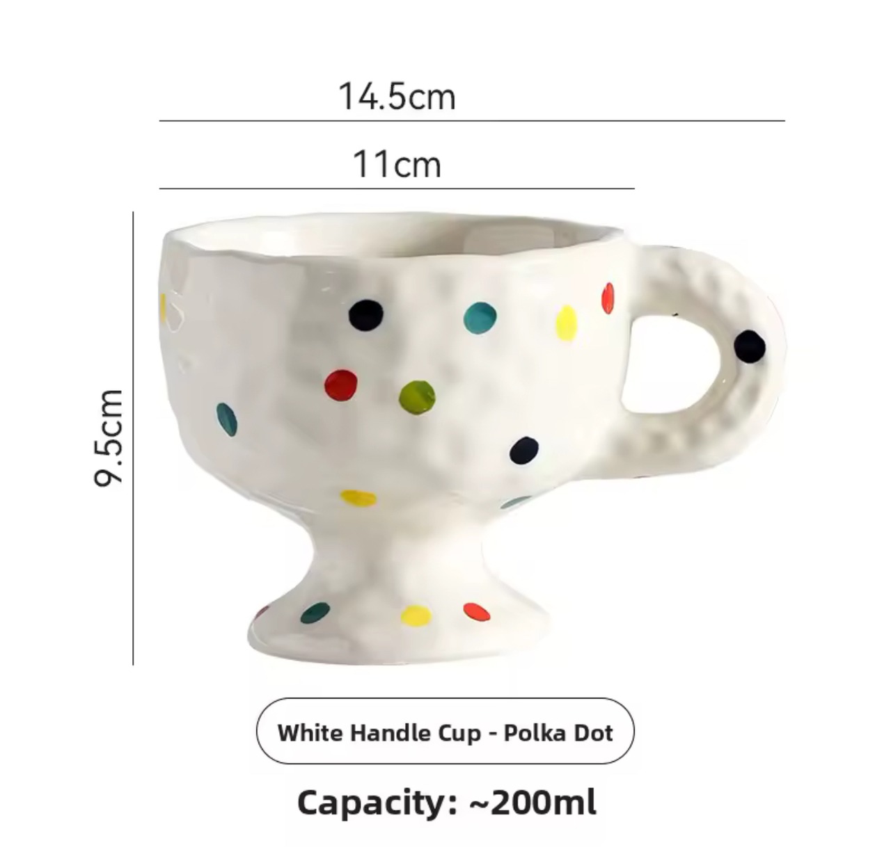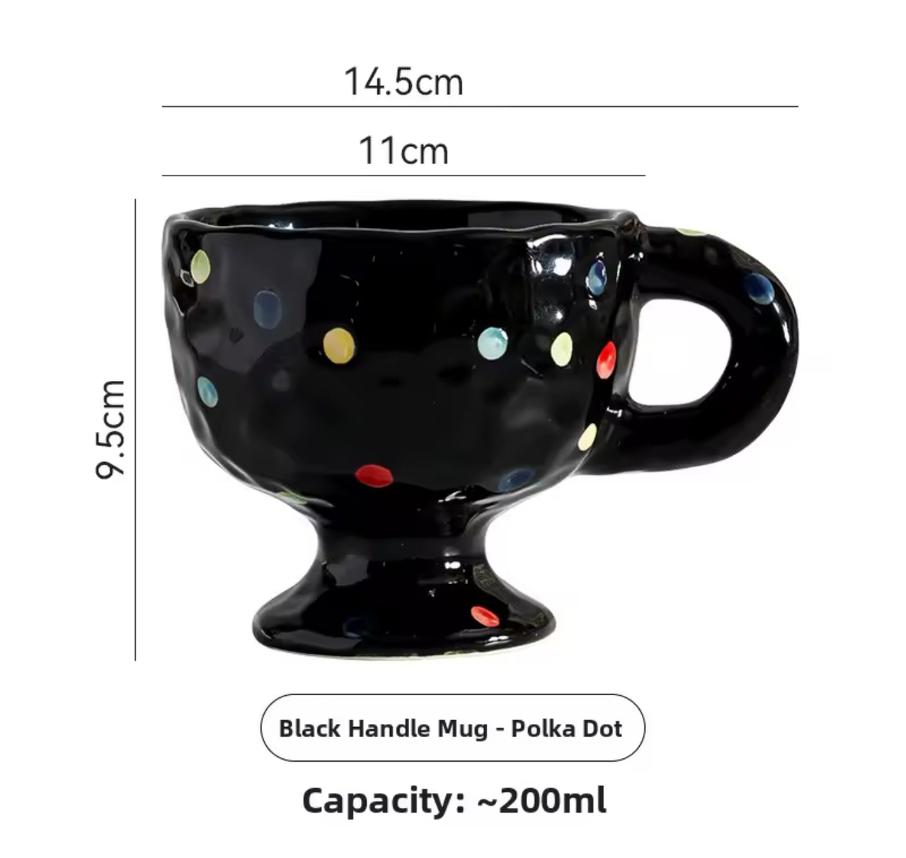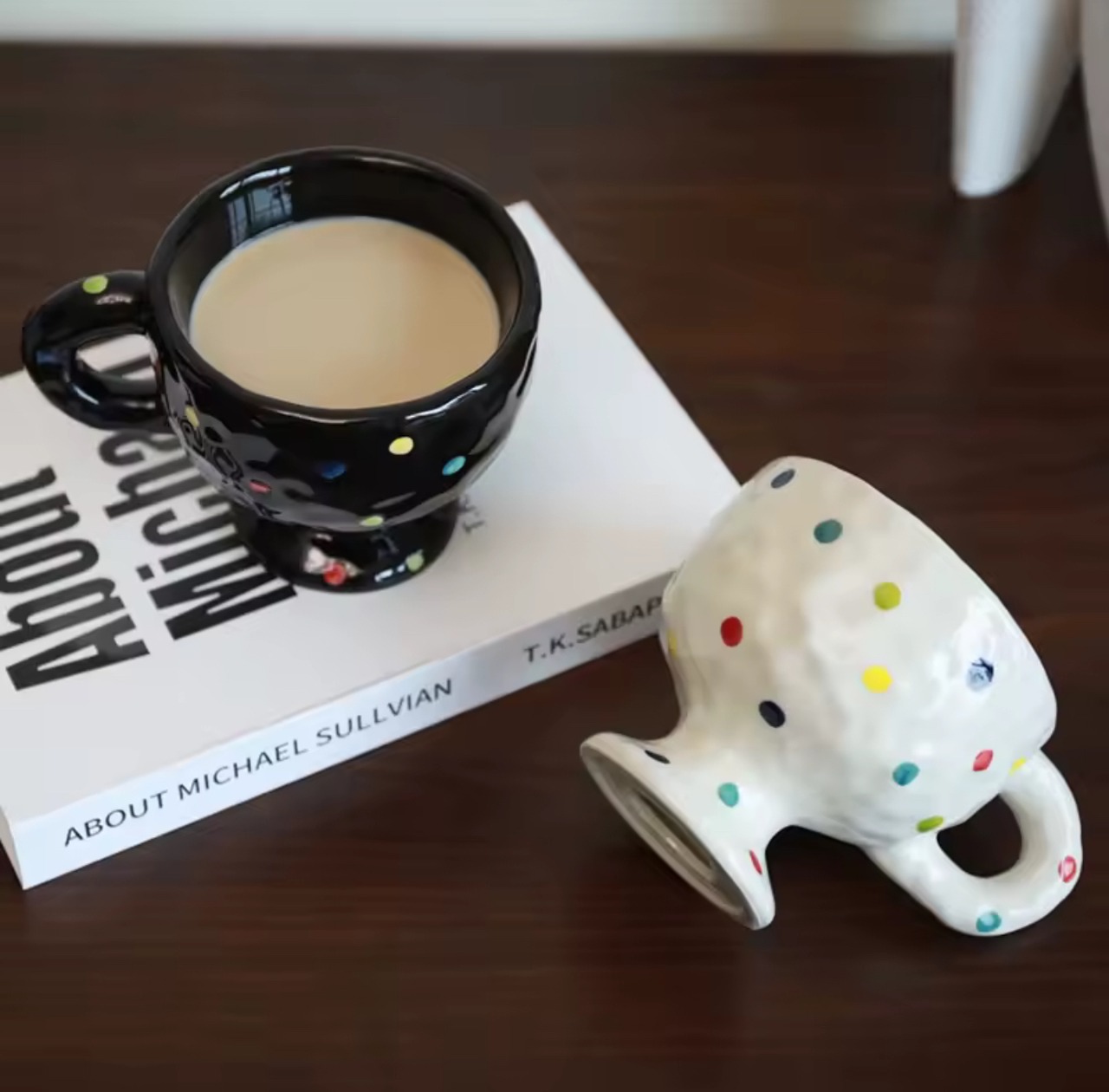 ■レトロなインスタイルのセラミックマグカップ - おしゃれな朝食タイムを演出する、個性的なドット柄のカップ!