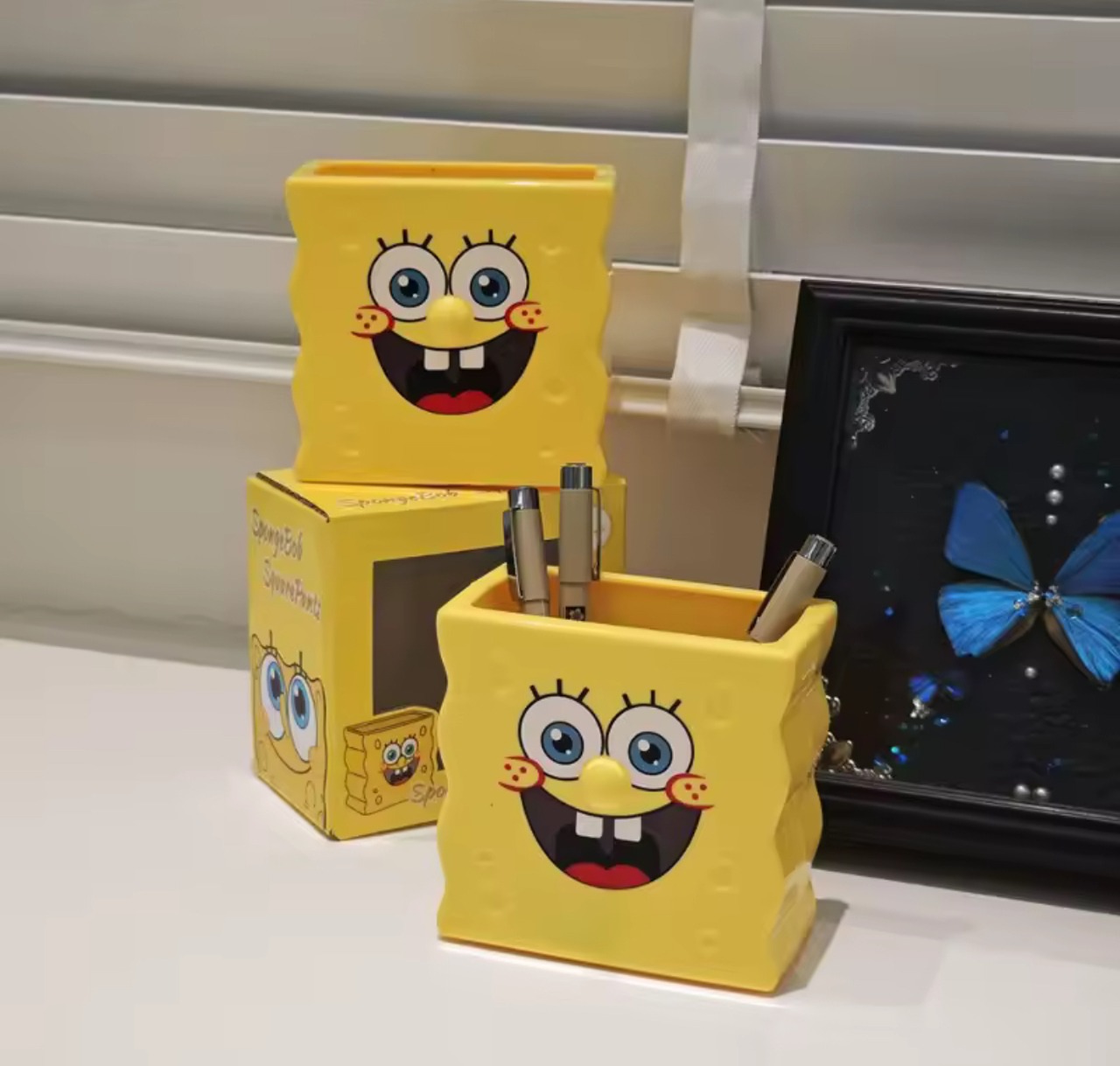 ■スポンジボブスクエアパンツ収納ボックス - あなたのデスクを可愛く彩る、スポンジボブデザインのペンホルダー!