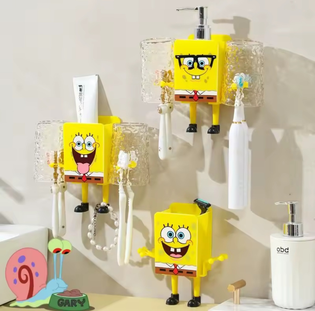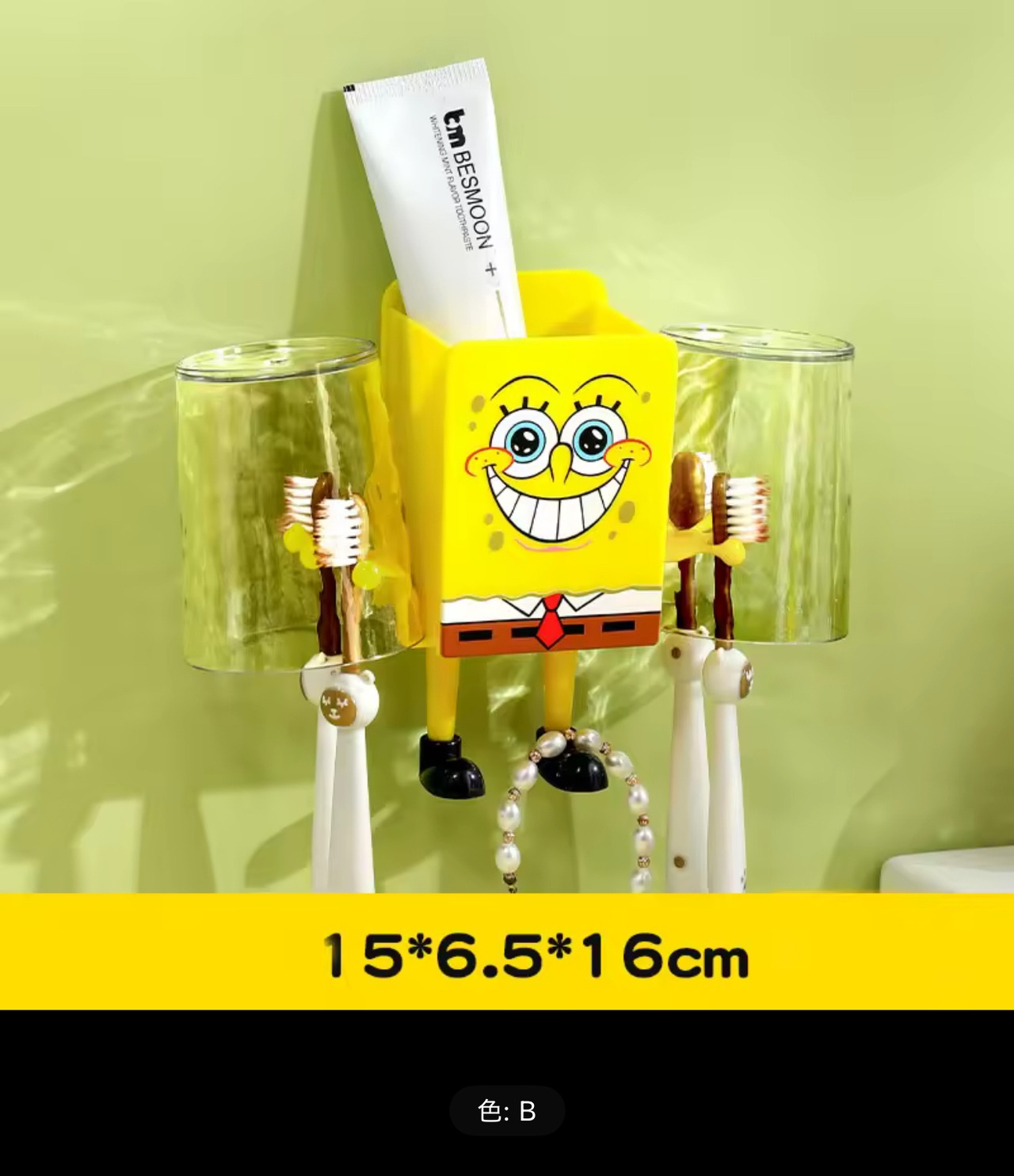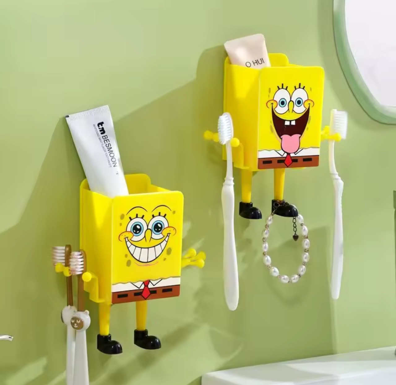 ■歯ブラシやブラシホルダー スポンジボブ - 毎日の歯磨きを楽しくする、可愛いデザインのブラシホルダー!
