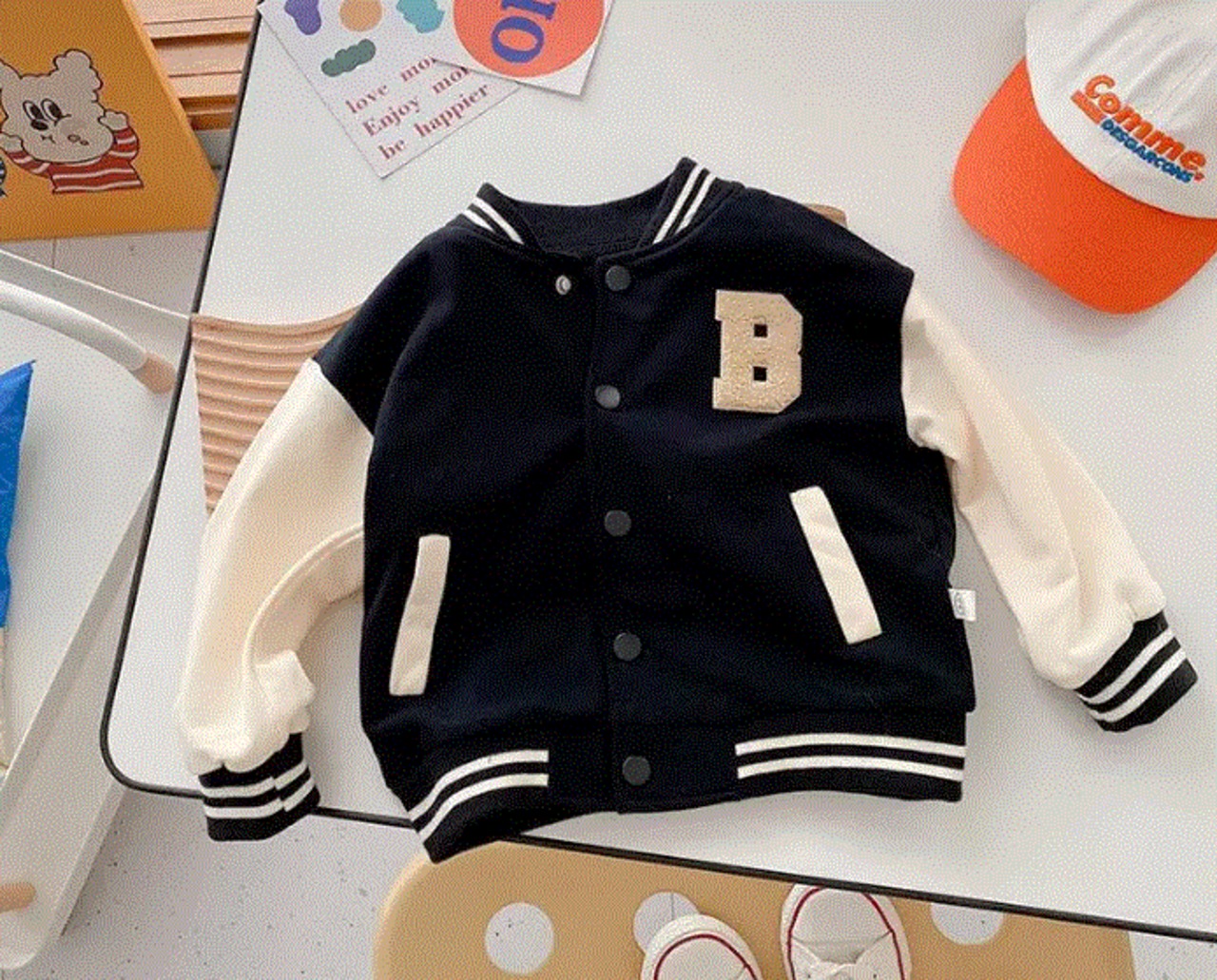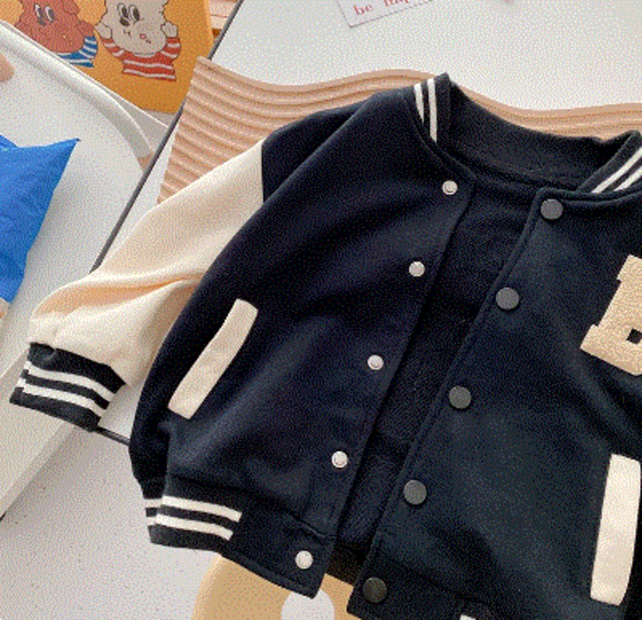 赤ちゃんや子供にぴったりの長袖ジャケットが登場しました!アルファベットデザインと野球ユニフォームの組み合わせが、おしゃれでかわいらしい一着です。カラフルなデザインが目を引き、活発なお子様にも似合いますよ。